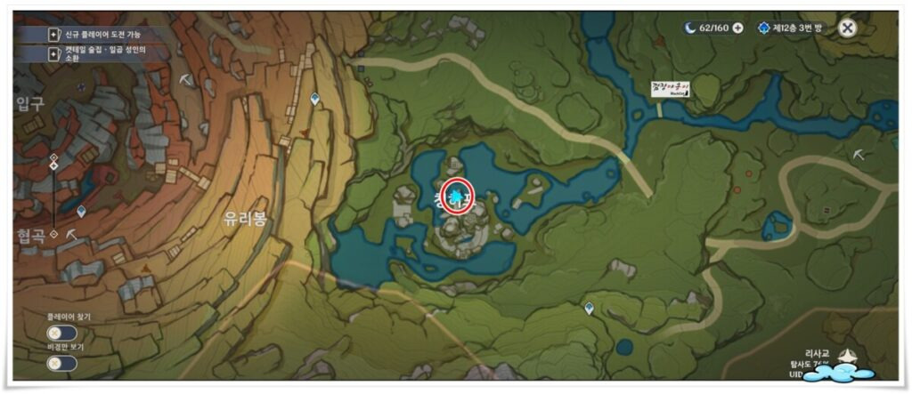 리월과 층암거연의 중간에 보시면 청허포라는 연못 중간에 바위산(?), 신전(?) 같은 곳이 있는 지역을 발견하실 수 있을 텐데요.