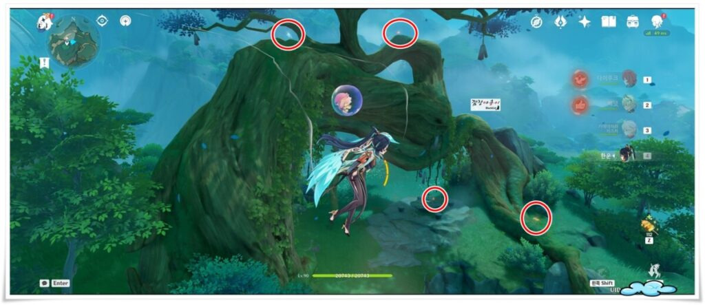 나무 주위에 있는 4마리의 나비가 있는데 캐릭터를 움직여 근처로 다가가면 나비들이 나무 아래로 모여들게 됩니다.