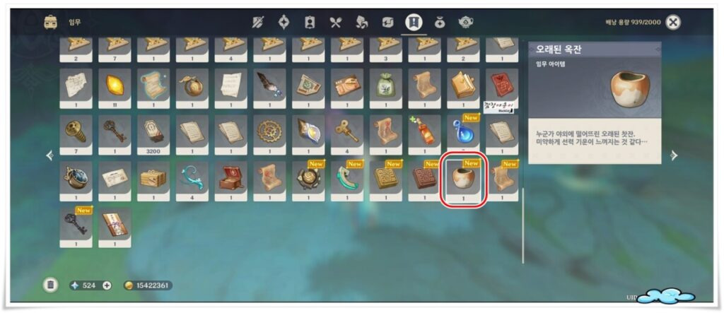 '오래된 옥잔'을 발굴했다면 위 표기해뒀던 나무로 오셔서 '오래된 옥잔'을 사용해 개방을 합니다.