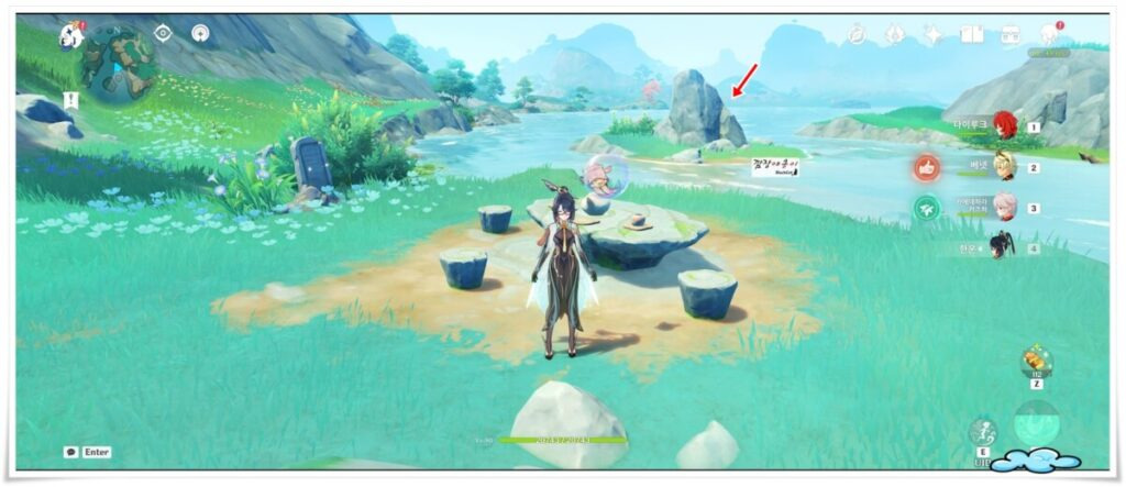 드디어 마지막 단계입니다. 위 지도에 표기해둔 곳으로 가시면 찻잔이 있는 돌로된 테이블이 있고 뒤쪽으로 개울가 안에 큰돌이 하나 있을텐데요.