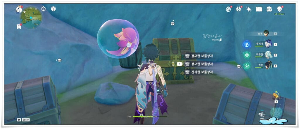 마물들을 해치워 버리고 한쪽에 있는 작은 동굴속을 보면 1개의 진귀한 보물상자와 2개의 정교한 보물상자를 획득 하실 수 있습니다.