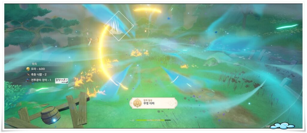 첫 시작은 슬라임인데 이녀석들을 열심히 잡다보면 다 죽어가는 나무 위에 노란색 표기와 함께 '성한기운의 근원'이 나타납니다.