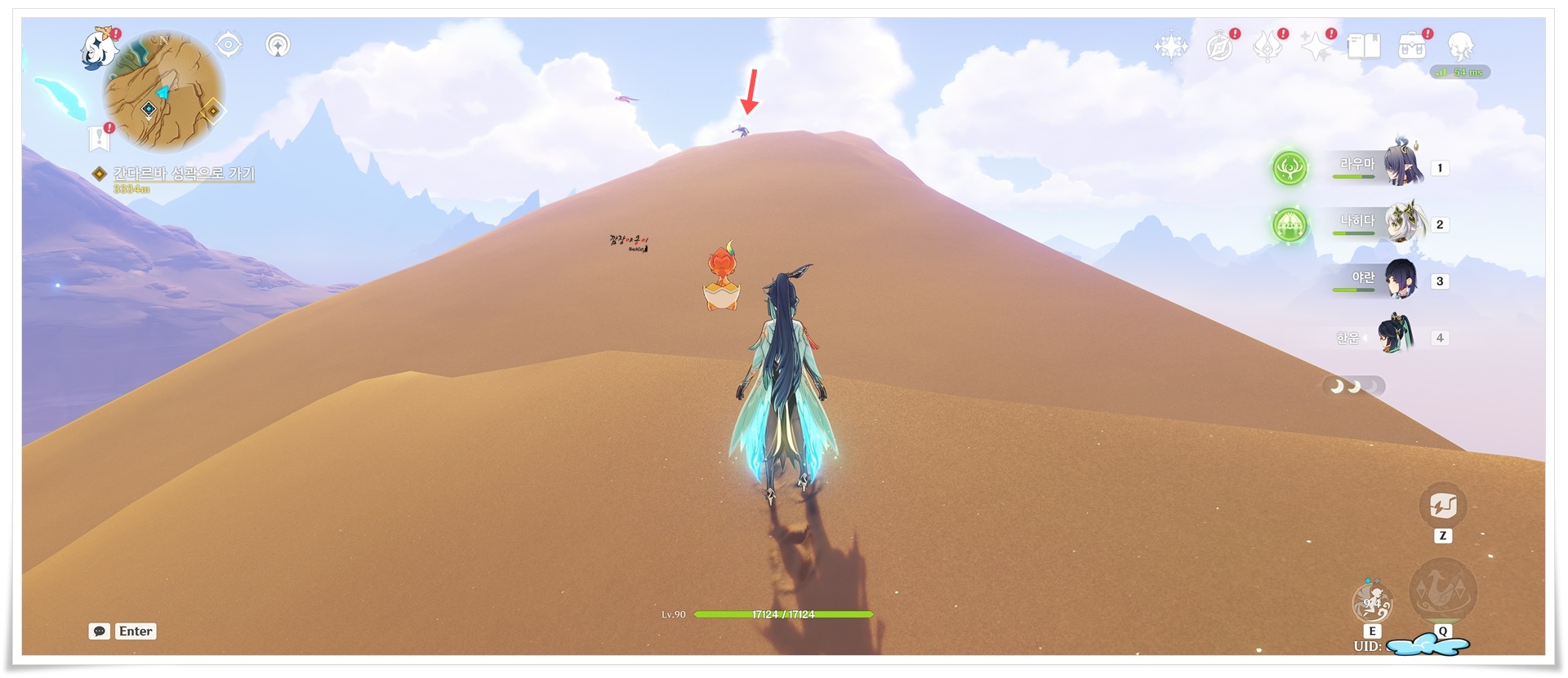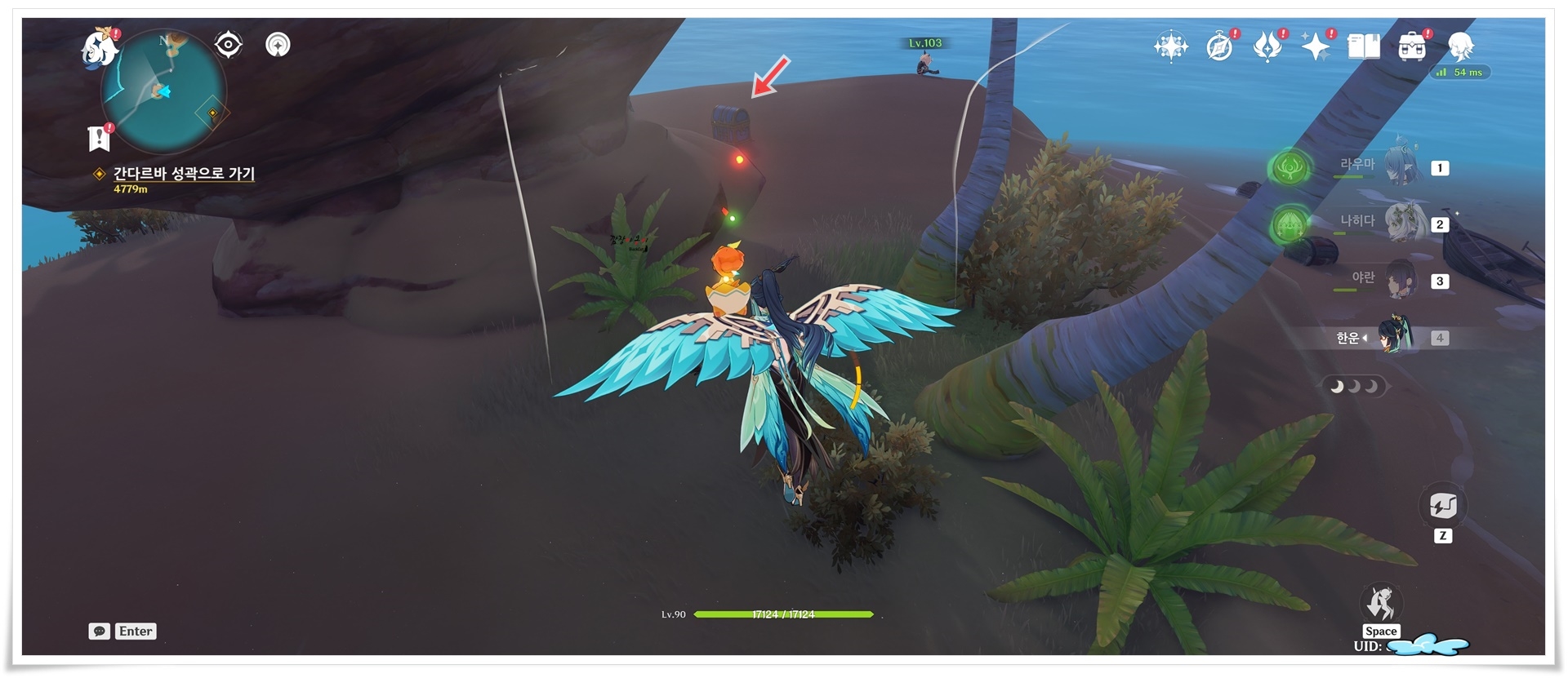 감로 꽃바다 앞 가장 높은 봉우리에 오르면 되는데 가장 가까운 포인트가 바로 아래 있는 '땅속의 소마 바다'죠. 하지만 이곳으로 워프 하셔봐야 오를 수 없습니다. 다른 루트를 이용해 올라오셔야 합니다.