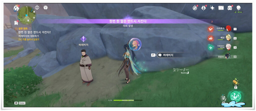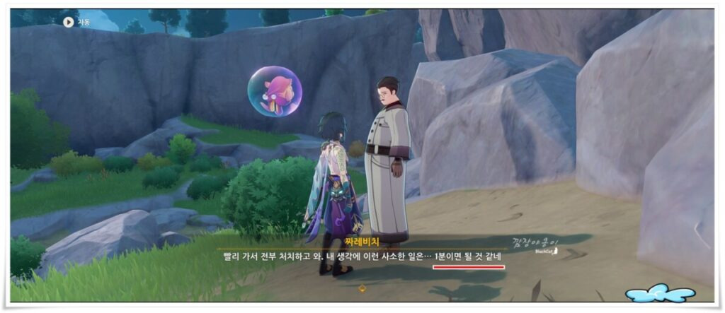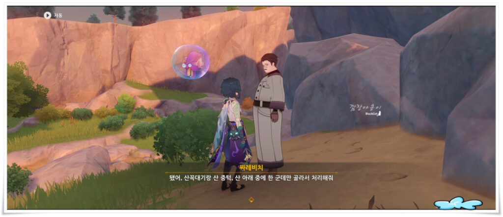 바로바로 대화를 넘기지 마시고 NPC가 하는 말을 잘 보시면 잡는 방법에 대해 알려주니 그대로 진행하시면 손쉽게 미션 클리어!!