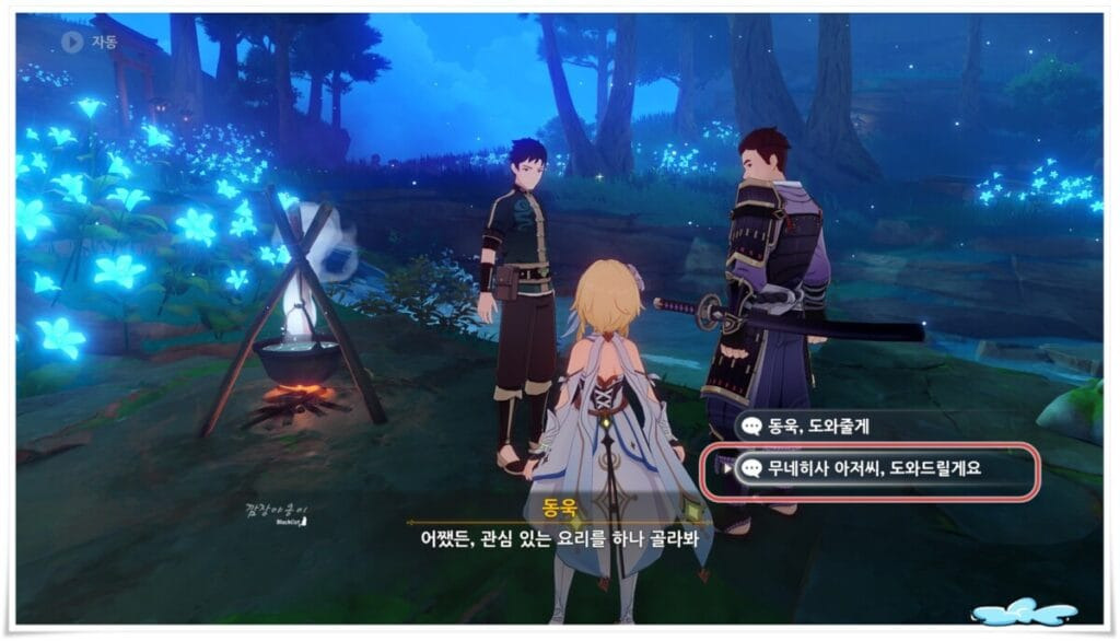 두번째 퀘스트는 요리대결에 필요한 재료를 구해오는 것으로 동욱과 무사히네 근처에서 바로 구할 수 있으며 지도에 표시가 되어 있어 지도만 보시고 따라 가시면 됩니다.