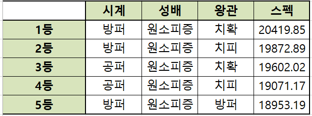 성유물 세팅시 참고하시면 좋을 듯 합니다.