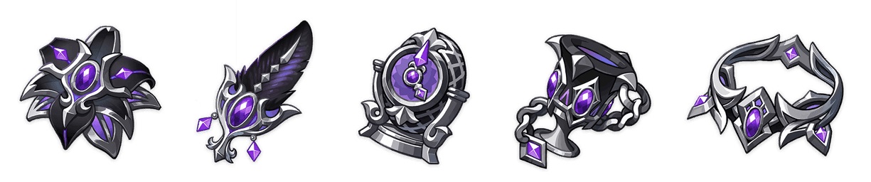 주변에 있는 파티 내 캐릭터가 달빛 반응 발동 시, 장착 캐릭터가 필드 위에 있을 경우 4초 동안 지속되는 「월광·음모」 효과를 획득한다: 파티의 달빛 징조가 초승/보름인 경우, 치명타 확률이 15%/30% 증가한다. 파티 내 캐릭터가 서로 다른 「월광」 효과를 1개 보유할 때마다, 파티 내 모든 캐릭터가 발동한 달빛 반응으로 주는 피해가 10% 증가한다. 「월광」으로 생성된 효과는 중첩되지 않는다.