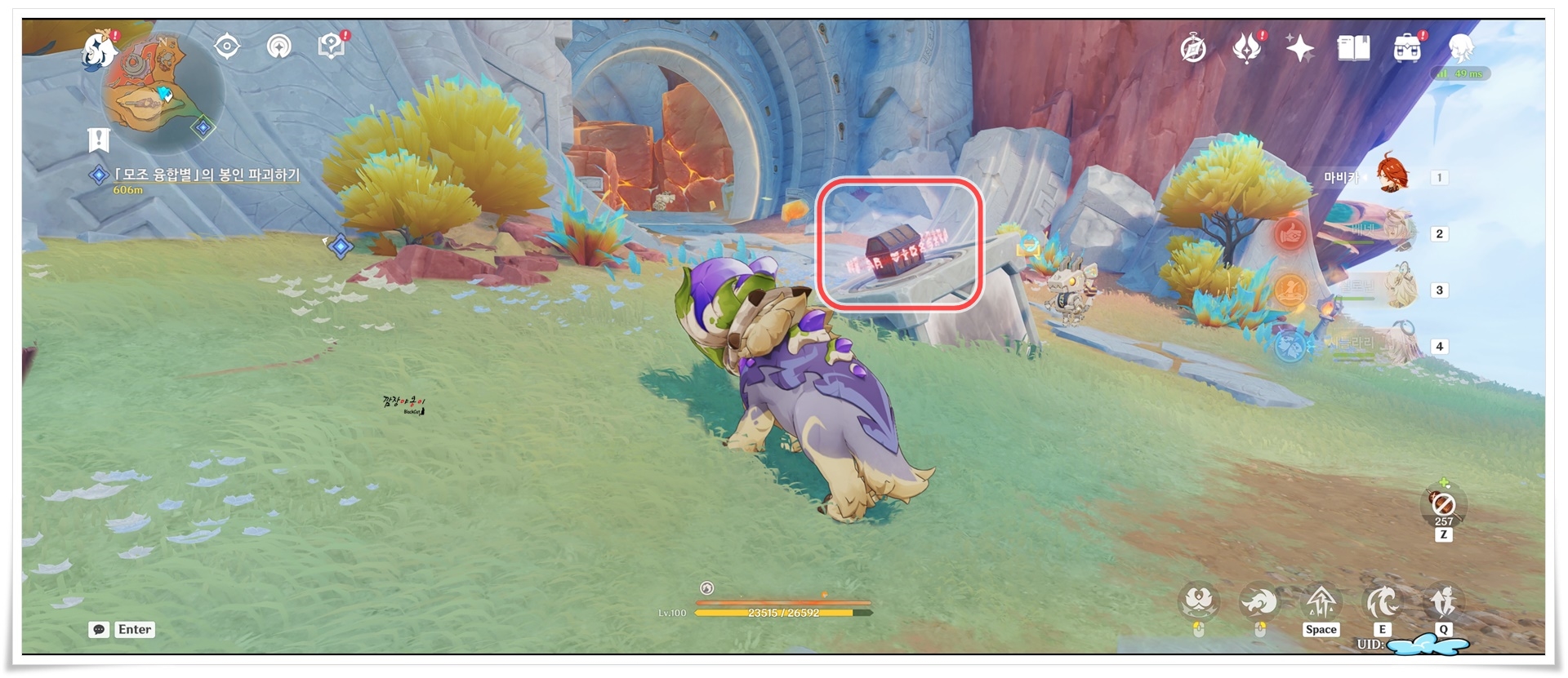 그럼 이제 안쪽으로 진입을 하셨을 텐데요. 누가봐도 나 기믹이에요~ 활성화 시켜주세요! 라는 말을 하고 있는 것만 같은 저것을 활성화 시켜 줍니다.