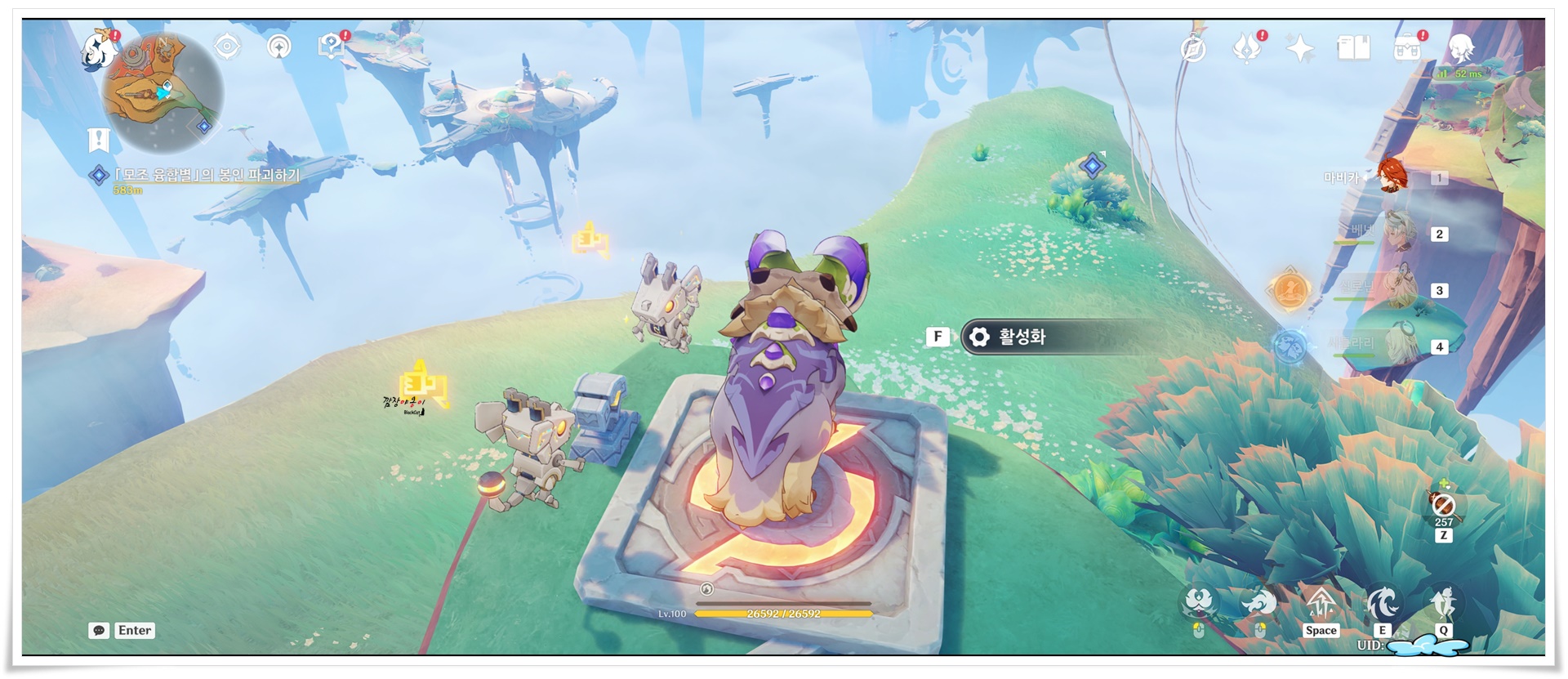 보물상자를 먹고 그자리에서 활성화를 누르면 기둥이 점점 올라가서 위쪽으로 이어지게 됩니다. 위에 닿을때까지 내리지 마시고 기둥 위에 가만히 기다리시면 됩니다.