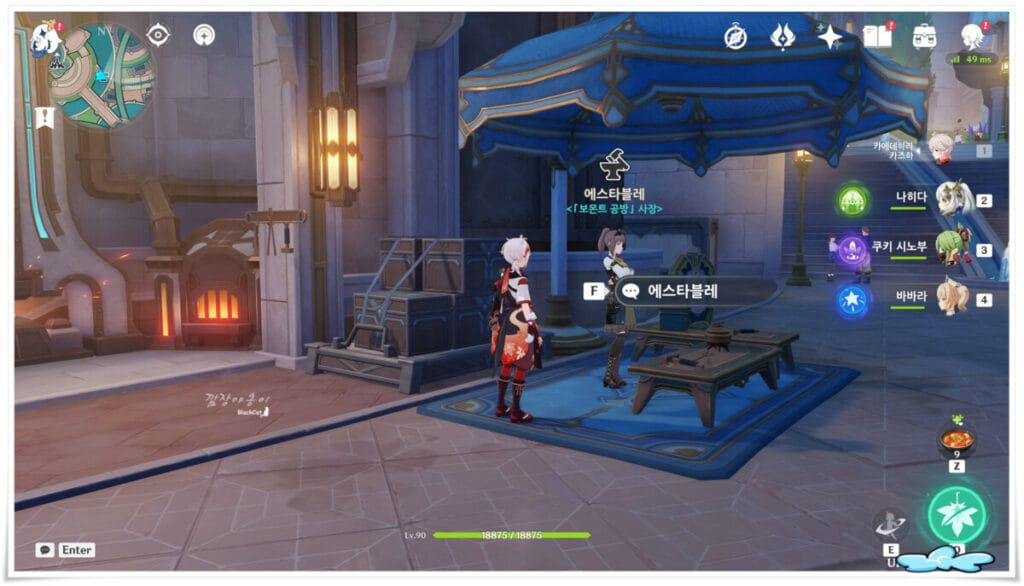 폰타인성에서 지도에 표시해둔 곳으로 가시면 NPC 에스타블레를 만날 수 있습니다. NPC 에스타블레는 보몬트 공방 사장으로 단조무기를 제작하는 NPC입니다.