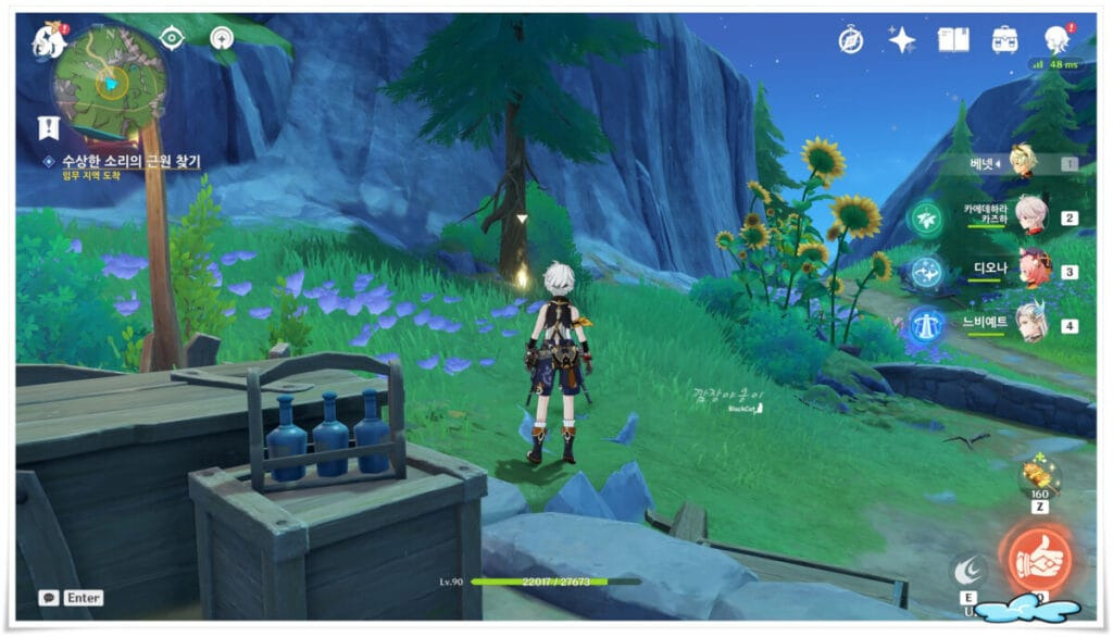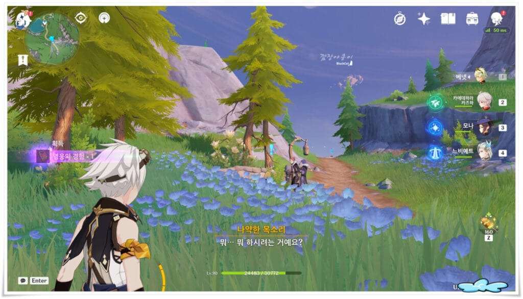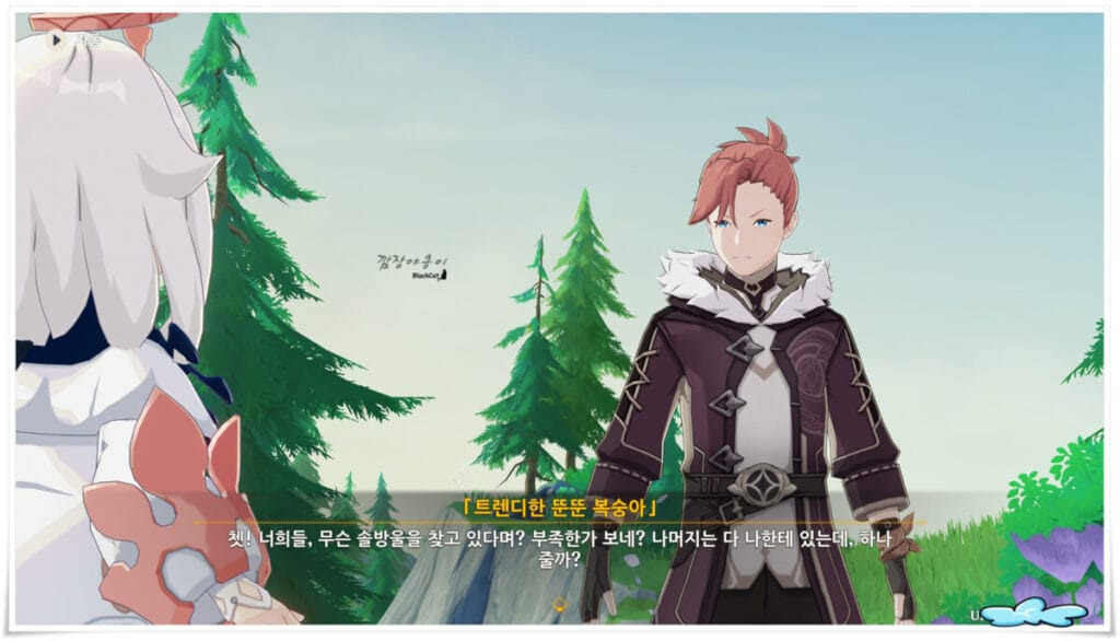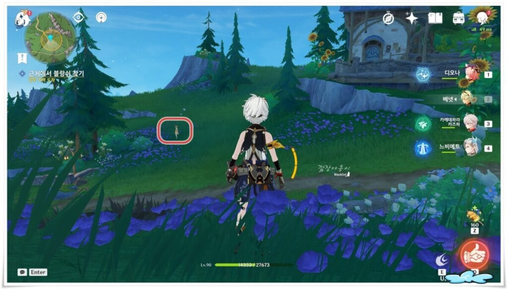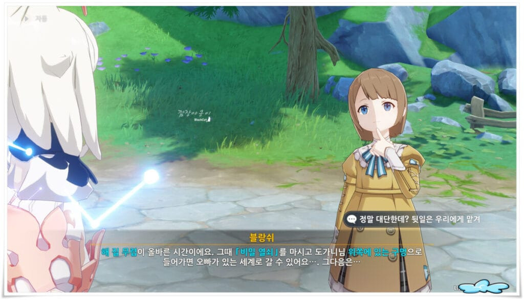 이슬까지 구하고 나면 다시 NPC블랑쉬를 찾으라고 합니다. NPC블랑쉬는 오두막 아래 풀밭에 있답니다.