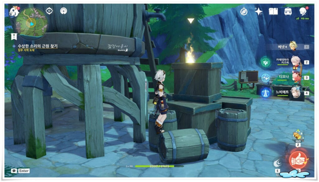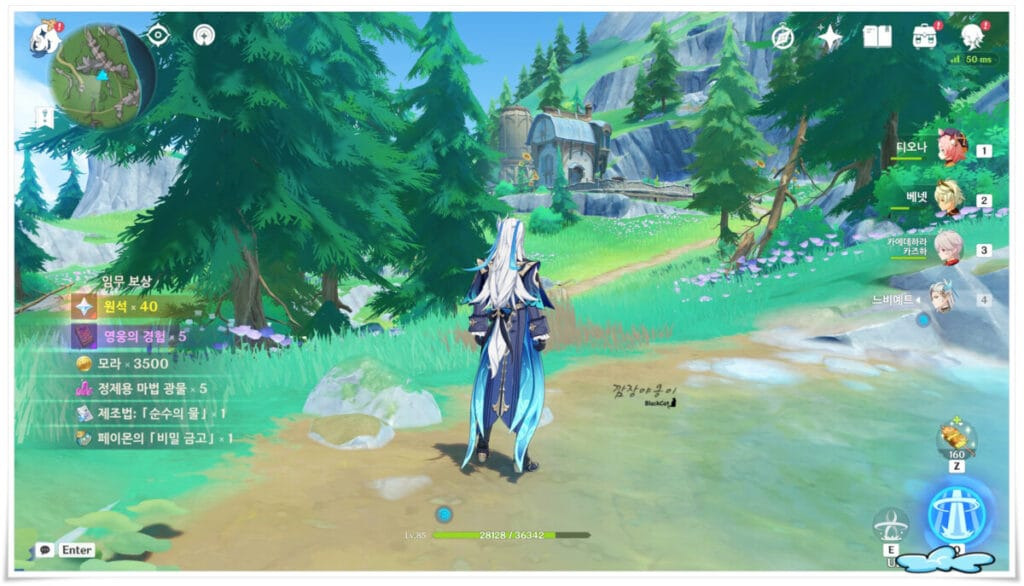NPC블랑쉬와 대화후 그의 오빠를 찾으로 가는데요. 이번 퀘스트의 주 무대가 될 오두막집에 도착하시면 물의 '신의 눈동자'가 있으니 먼저 획득하시면 좋을 거 같네요.