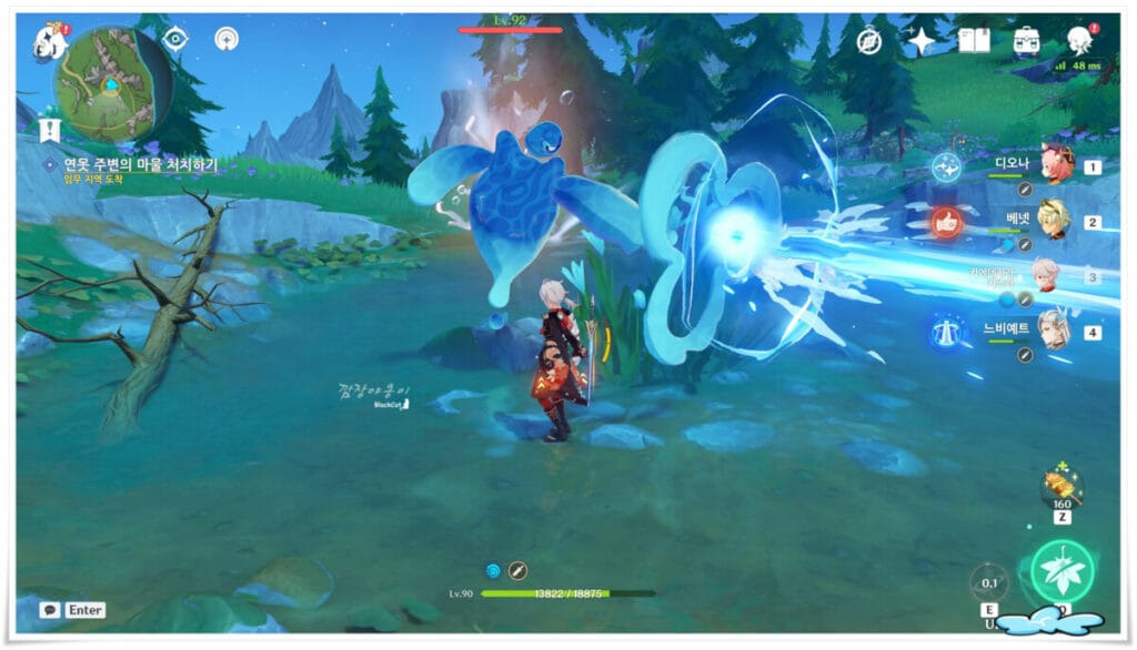 상대가 물속성이니 이왕이면 물속성 딜러는 빼고가세요~ 앞서 항아리 채운다고 느비예트랑 함께했더니 엄청 고생했네 ㅠㅠ