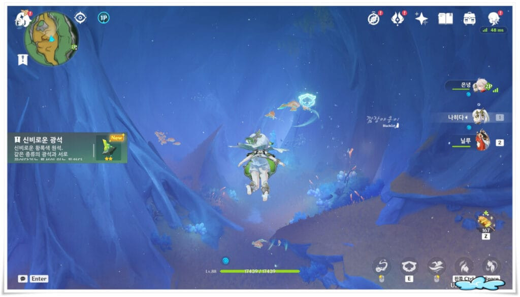 동굴을 따라 가다보면 '이색 원류바다 이종'이 2~3마리 정도 보이니 미리 스킬을 복제해 줍니다.