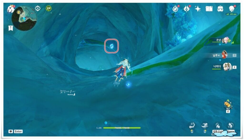 동굴에 진입을 하시면 2개 중 첫번째 물의 '신의 눈동자'를 획득 하실 수 있습니다. 가는 길에 먹고 가시면 됩니다!