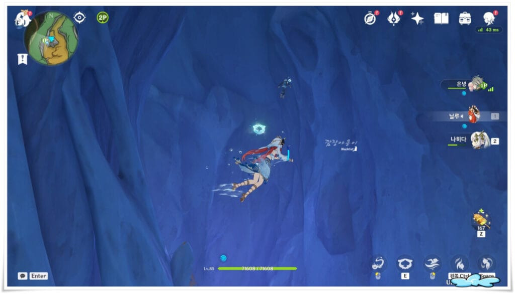 즉, 빨간색 일 때는 성게의 몸통의 스킬로 때리고 희미한 분홍색일때는 촉수의 밝게 빛나는 부분을 스킬로 때리고 나오는 몬스터를 잡으시면 됩니다. 중간 중간 캐릭터들의 피가 어느정도 빠졌다 싶으면 사망하기 전에 주위에 피랠 채워주는 물고기를 이용해 피를 보충하시면서 진행하시면 됩니다.