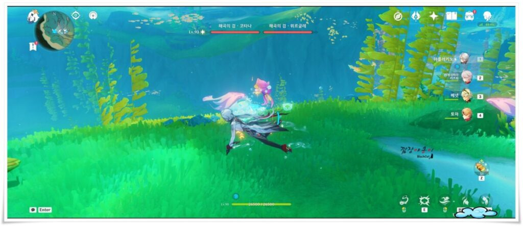 2마리의 네임드 몬스터 가오리는 다른 가오리들과 다르게 분홍빛을 띄고 있고 근처에 도착하면 자동으로 상단에 이름이 뜨게 되어 있어 찾는데 어렵지 않습니다.