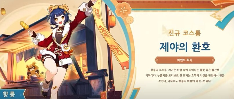 🔍원신(홈페이지) 초창기 시절 탈4성급으로 인기가 많았던 향릉의 신규 코스튬 '제야의 환호'가 출시되었습니다. 다행히 현질하지 않으셔도 메인 이벤트 1,500포인트만 달성하시면 무료로 획득 할 수 있습니다.
