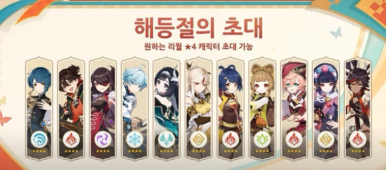 해등절 이벤트에 참여해서 1,200포인트 이상 달성을 하시면 리월출신 4성 캐릭터 중 1명을 초대하실 수 있습니다.
