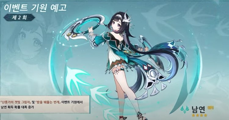 저처럼 전반부에 원석 다 갈아버려서 후반부에는 손가락만 빨아야 하시는 분들이라면 신규 캐릭터인 '남연'을 해등절 이벤트로 초대하시는 것도 좋을 듯 합니다.