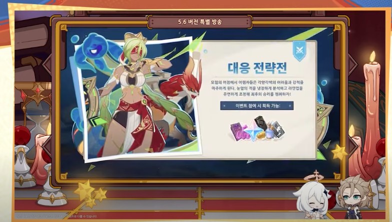 며칠전이었죠. 드디어 원신 5.6 업데이트에 대한 방송이 있었습니다. 5.6에 스커크가 나올 수 있다는 찌라시가 돌긴 했지만 이번에 없는 걸로 봐선 5.7에 나올 확률이 매우 높아졌네요.