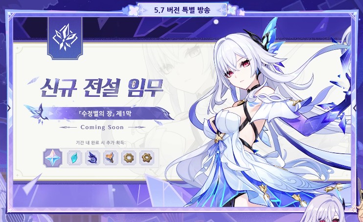 새로운 캐릭터, 새로운 버전이 업데이트 되는 만큼 신규 전설임무가 나옵니다. 역시나 이번 전설임무를 클리어 하시면 스커크 육성재료를 얻을 수 있으니 뽑으실 분들은 전설임무도 빠르게 진행하시는 것을 추천합니다.