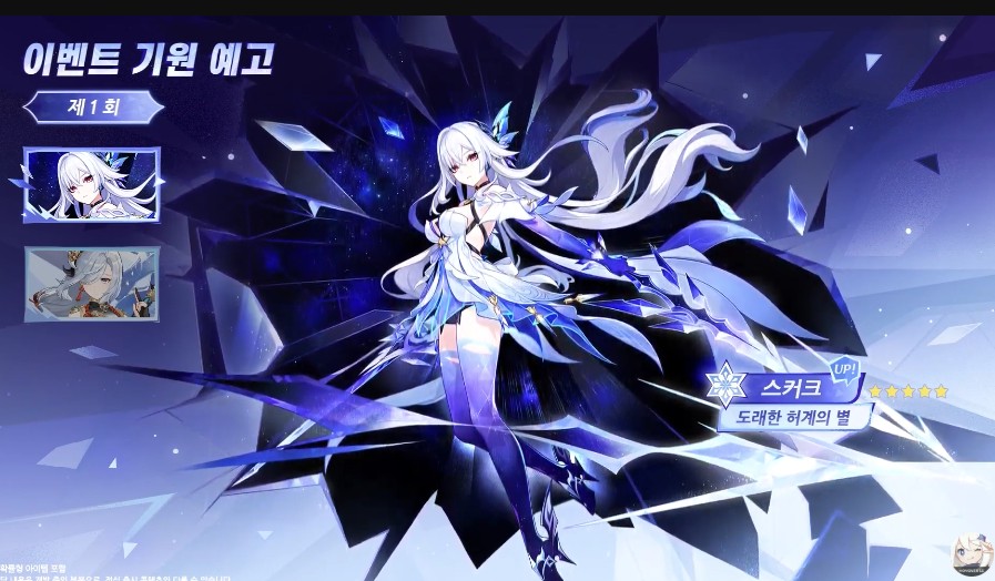 이번에 출시되는 스커크는 신의눈이 아닌 심연의 힘을 사용하틑 캐릭터이나 이를 얼음 원소로 치환시켜 사용하는 캐릭터로 온필드 딜러, 잠깐 나오는 서브딜러 모두 사용이 가능한 캐릭터입니다. 동료들의 스킬 LV.1을 올려주는 버프가 있으며 물원소/ 얼음원소와 함께하면 성능이 향상된다고 하네요.