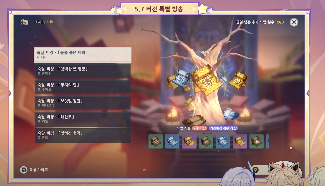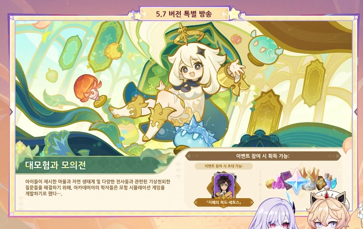 원신 5.7버전 업데이트 내용/ 스커크 출시/ 복각 캐릭터/ 리딤코드