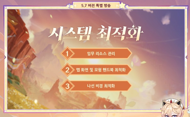 모바일 클라이언트의 용량을 줄이는 업데이트로 일상적인 게임을 즐기는 리소스는 유지되고 마신임무/ 전설임무/ 초대이벤트가 차지하는 리소스가 최적화 되어 휴대폰에 차지하는 원신의 용량을 줄여줍니다.