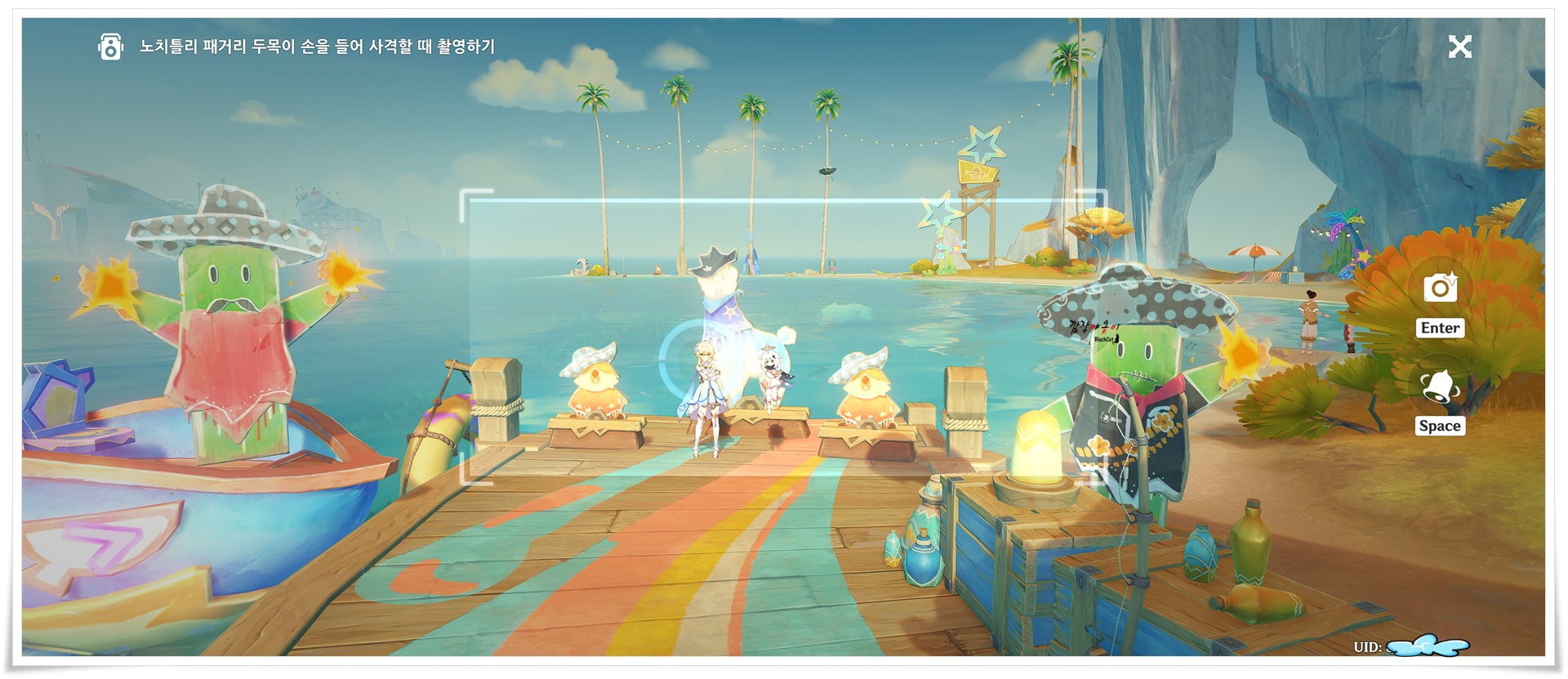 스페이스바를 누른 뒤, 나나스 사람이 인사할 때 엔터키를 눌러 촬영을 하시면 됩니다.