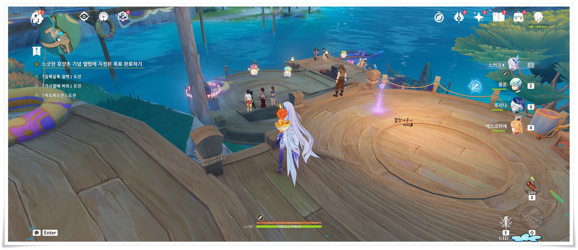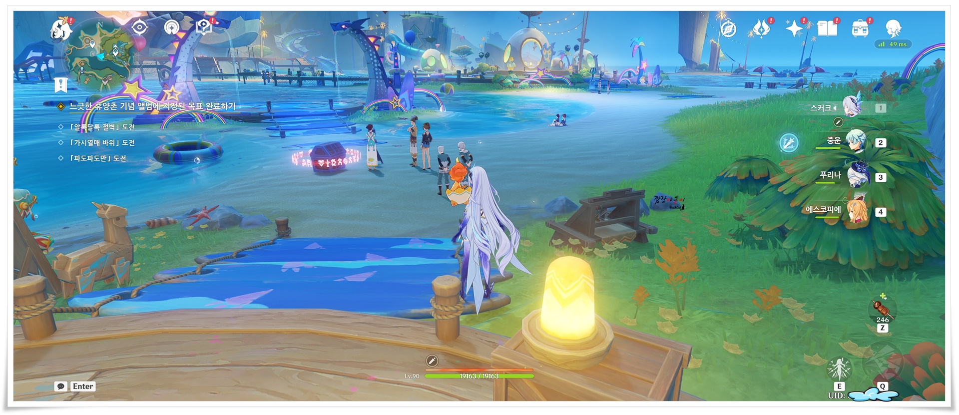 그동안 이런 저런 이유로 매일 일퀘만 하고 끄기 바빳는데 신규 맵도 업데이트 되고 여름 이벤트도 생겨서 오랜만에 원신을 좀 즐겼네요.