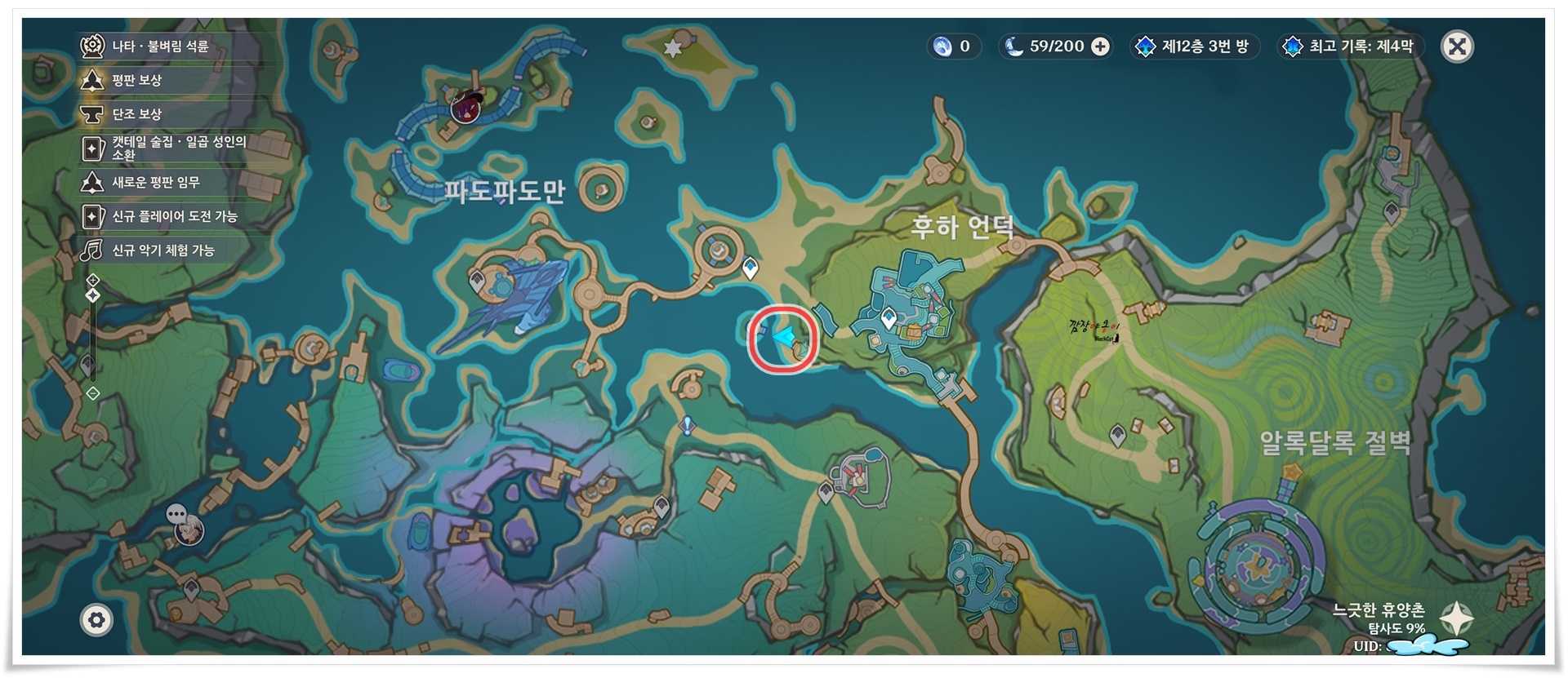 5개 중 세번째, 파도파도만 랜드마크의 경우 느긋한 휴양촌, 후하언덕과 파도파도만 사이에 있습니다. 정확한 위치는 위 지도를 참고해 주세요.