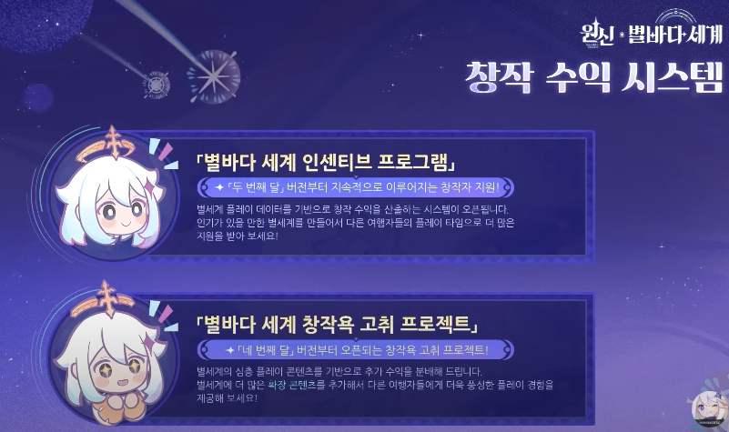 유저가 직접 별바다 맵을 만들어서 잘 만들어질 경우 실제 수익을 얻을 수 있다고 하는데 업데이트가 되고 좀더 데이터가 쌓여봐야 정확한 내용을 알 수 있을 듯 합니다.