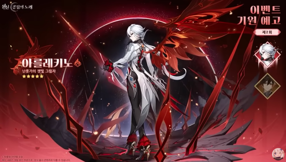후반부에는 불속성 딜러인 '아를레키노'와 집정관 보호막캐인 '종려'가 복각될 예정입니다. 불 딜러 중 데미지 강력하고 사용하기 편한 캐릭터를 뽑는다면 '아를레키노'를 추천합니다. 저도 아주 잘 사용하고 있는 캐릭터랍니다.