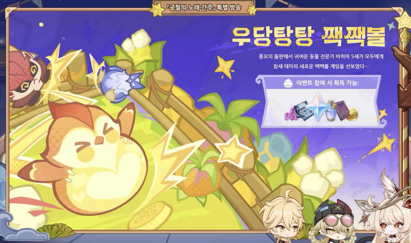 다른 유저들과 함께 하는 다인모드 숨바꼭질, 코인을 모으는 인게임 용용정찰대, 눈덩이를 던저 눈사람 과녁을 없애는 눈사람 웨이브, 적들과의 전투로 점수를 올려야 하는 투혼의 시련 등이 준비되어 있습니다.