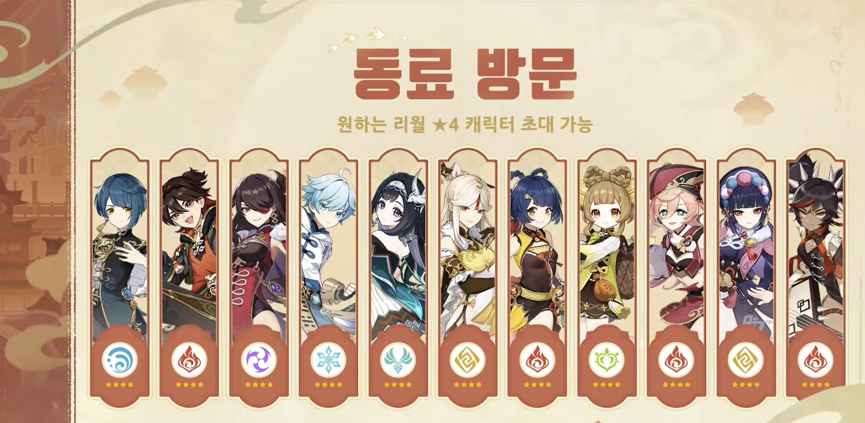 이벤트 참여시 리월 4성 캐릭터 중 하나를 획득 할 수 있습니다.