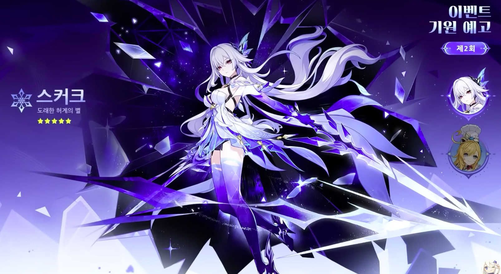 후반부에는 스커크와 단짝 에스코피에가 복각합니다. 아직 스서크와 에스코피에를 뽑지 않은 분이라면 강추하는 조합입니다. 제 메인 파티로 사용하고 있는 조합인데 강력한 딜링과 더불어 힐러까지 겸비해 사냥이 쉬워진답니다.