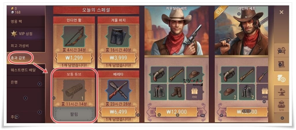 참고로 웨스트랜드 서바이벌 무료아이템을 얻기 위해선 광고를 봐야 한다는 점 명심하시길 바랍니다!! 광고가 짧은건 5초 긴건 60초짜리로 매일 무료아이템 받으려면 시간이 좀 필요하네요.. 하지만 쪼랩일때는 굉장히 큰 도움이 되니 초반에는 빠지지 말고 받으시길 바래요~
