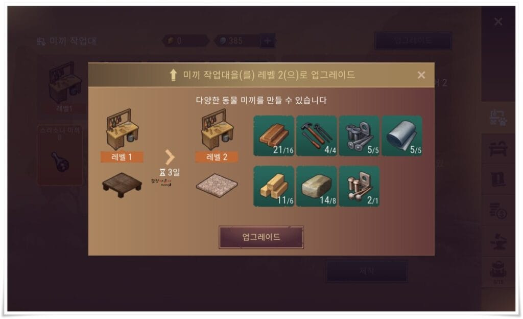 전 개보단 고양이과를 더 좋아해서 스라소니를 선택을 했는데요. 아마 여러분이 펫 하우스를 만들었다면 이제 미끼작업대도 만들 수 있을겁니다.