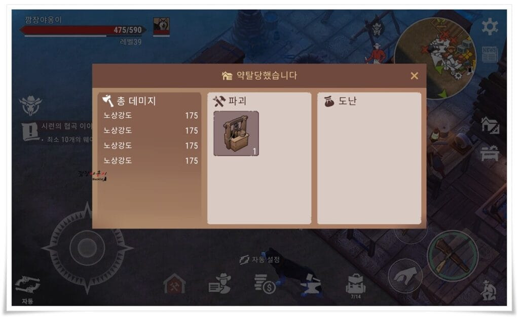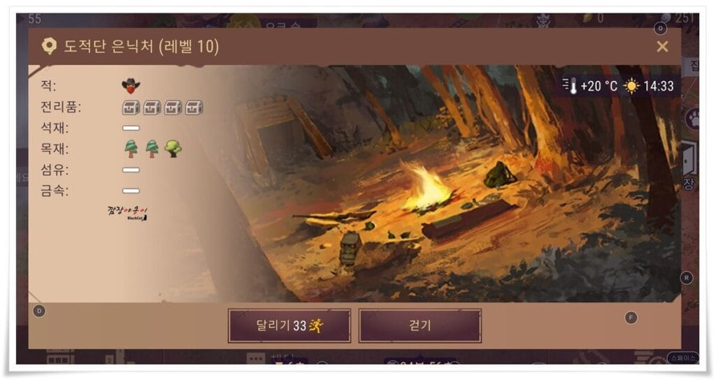 처음에는 그런걸 몰라서 새벽 3시에 습격이 오고 그랬었는데 이젠 대충 감이 잡히니 깨어 있는 시간에 노상강도 습격 이벤트가 발생할 수 있도록 하는 요령이 생기네요.