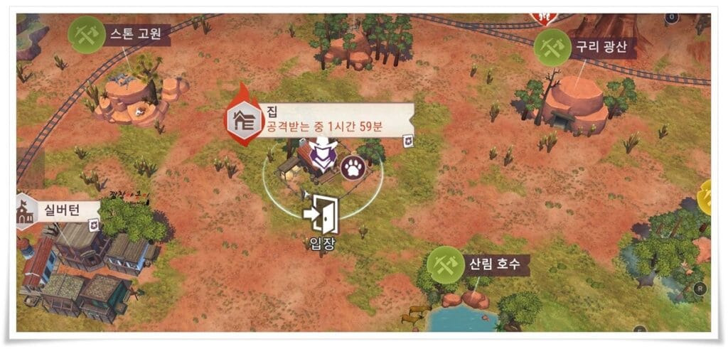 쫄보라 테스트 해보진 못했지만 함께 하는 게임친구의 말을 빌리면, 마을에 들어가지 않고 이렇게 마을 밖에 나와 있는 상태로 게임을 종료하면 다음 접속때까지 습격이 딜레이 된다고 합니다. 그리고 접속하면 그때부터 2시간 카운트다운이 시작된다고 하네요.