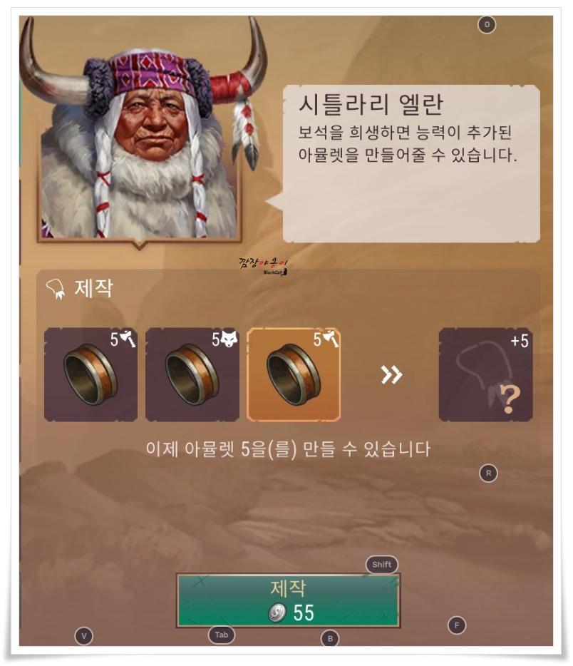 북부지역의 산족 마을로 가시면 NPC '시틀라리 엘란'이 있습니다. 3개의 5렙 반지를 올리고 55 은화를 주면 5렙의 목걸이로 교환 받을 수 있습니다.