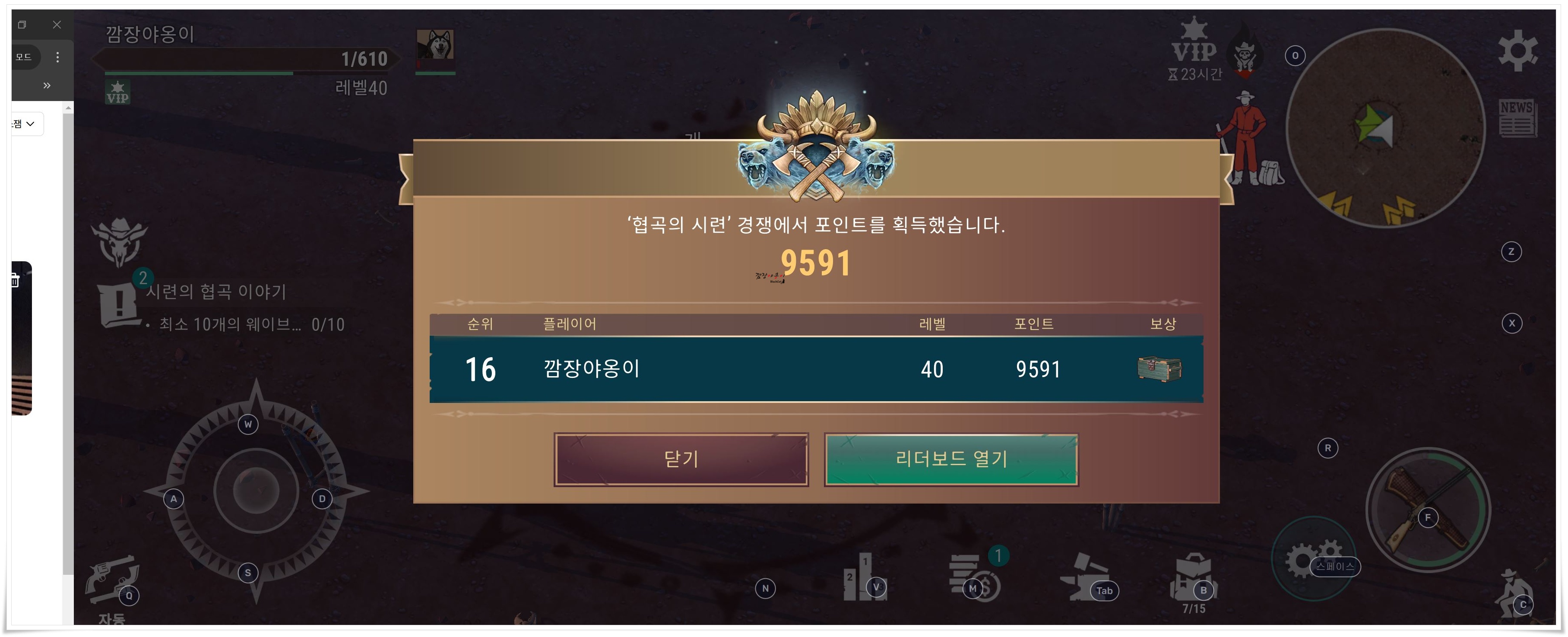 할만하다 싶으시면 다음 웨이브를 클릭하시면 다음 난이도로 넘어가고 더 이상 하지 않아도 될거 같으시면 종료를 클릭하시면 완료한 난이도에 해당하는 보상을 얻고 끝낼 수 있습니다.