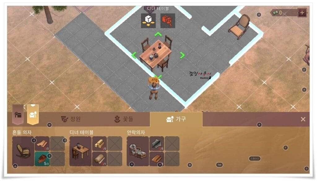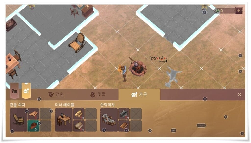 건물/ 작업장/ 창고/ 프로젝트/ 정원/ 꽃/ 가구 중 필요한 시설물을 건설하는 탭으로 발전을 위해서 꼭 필요한 내용입니다.