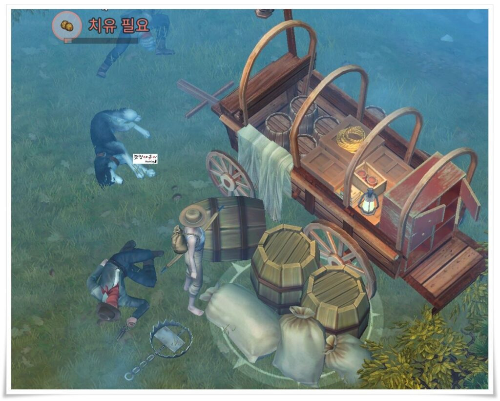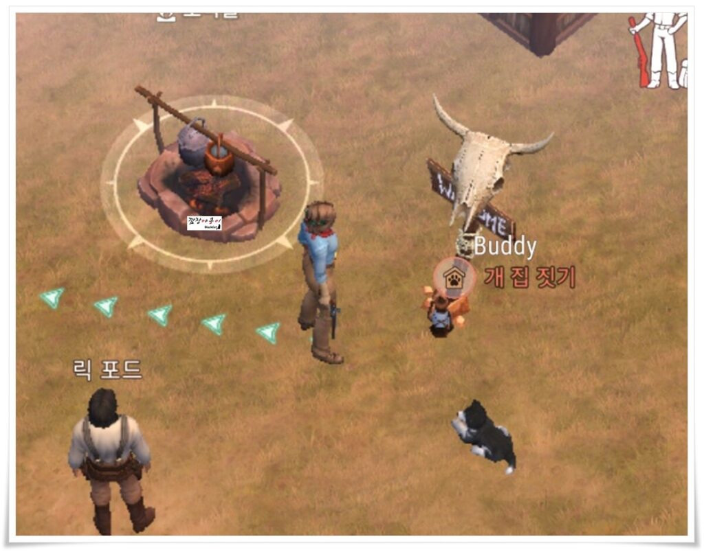 와이프는 아예 여기까지 오질 않았고 게임친구는 여기까진 왔는데 한번만 대화를 하는 바람에 강아지는 남았는데 개집을 못 지어 결국 함께 사냥하고 돌아다니는 펫으로서의 기능을 못하고 있었네요.