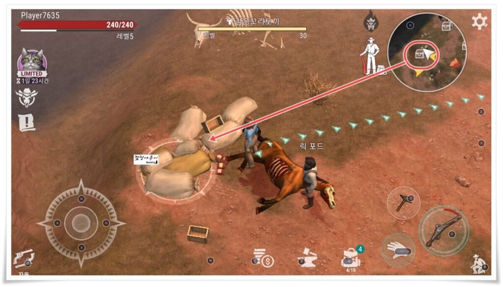이벤트 지역인 '부서진 역마차'는 약 30분 후면 사라지는 곳이니 아이템 회수는 나중에 하고 우선적으로 펫인 허스키를 받으로 가시면 됩니다. 시간적으로 여유는 있지만 혹시 또 모르니 허스키부터 받고 남는 시간에 아이템 회수하시는 걸 추천합니다.