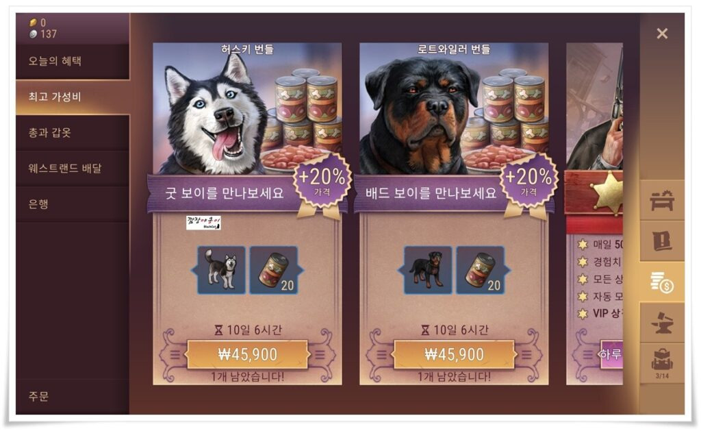 지금까지 모바일 게임 웨스트랜드 초보를 위한 유료아이템 허스키 펫을 무료로 받는 방법과 펫 먹이에 대해 알아봤는데요.