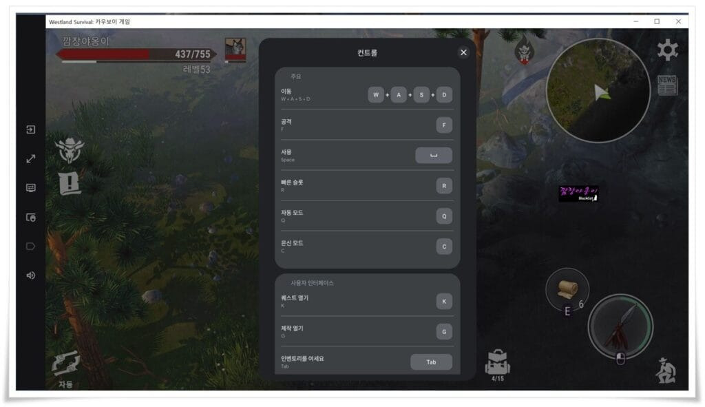 동일한 화면을 구글 플레이와 블루스택을 통해 확인해 봤는데요. 이동키라던지 화면이 살짝 다른 부분도 있지만 화질 등은 두 프로그램 모두 좋았습니다.