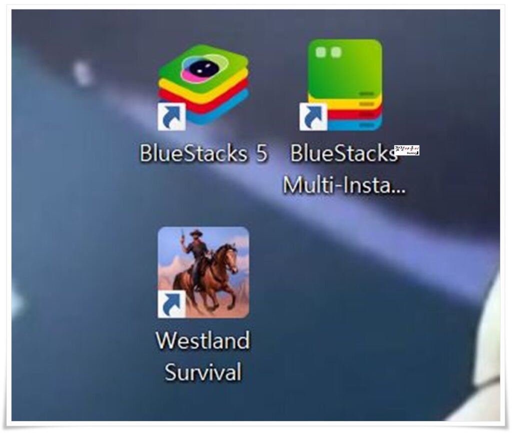 블루스택 프로그램 설치부터 웨스트랜드 게임 설치까지 진행하고 나면 이렇게 3개의 아이콘이 바탕화면에 뜰텐데 바탕화면 공간만 많이 차지하니 블루스택 아이콘 2개는 삭제해버려도 됩니다.
