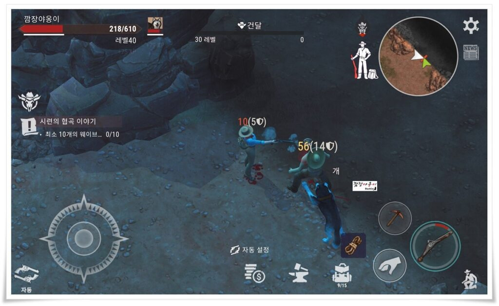 잘키운 멍멍이 하나 몸빵시켜 놓고 집에서 제작 할 수 있는 1티어 권총 데미지 70짜리 들고 와도 힘들지 않게 도적단 사냥이 가능하네요.